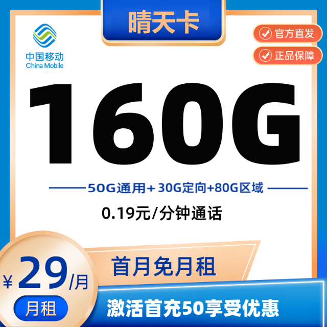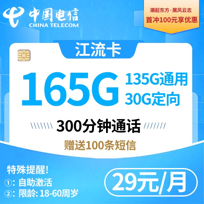29元包155G通用+30G定向+通话0.1元/分钟【部分流量次月底叠加】