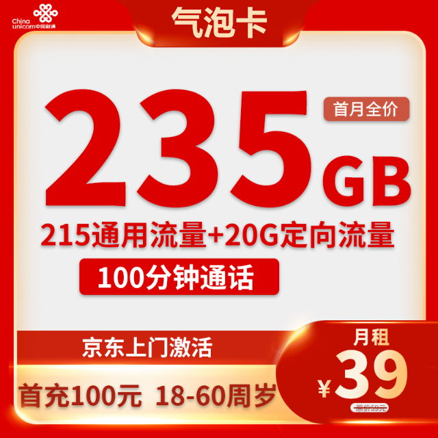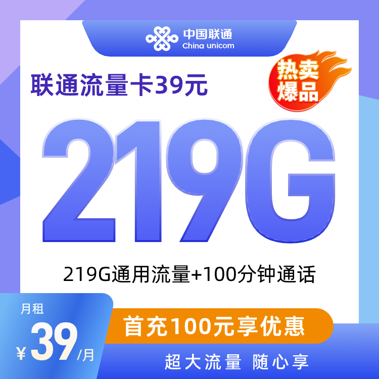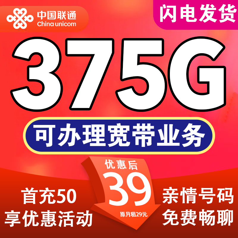 【只发安徽】安徽联通39元-375G【可加宽带】