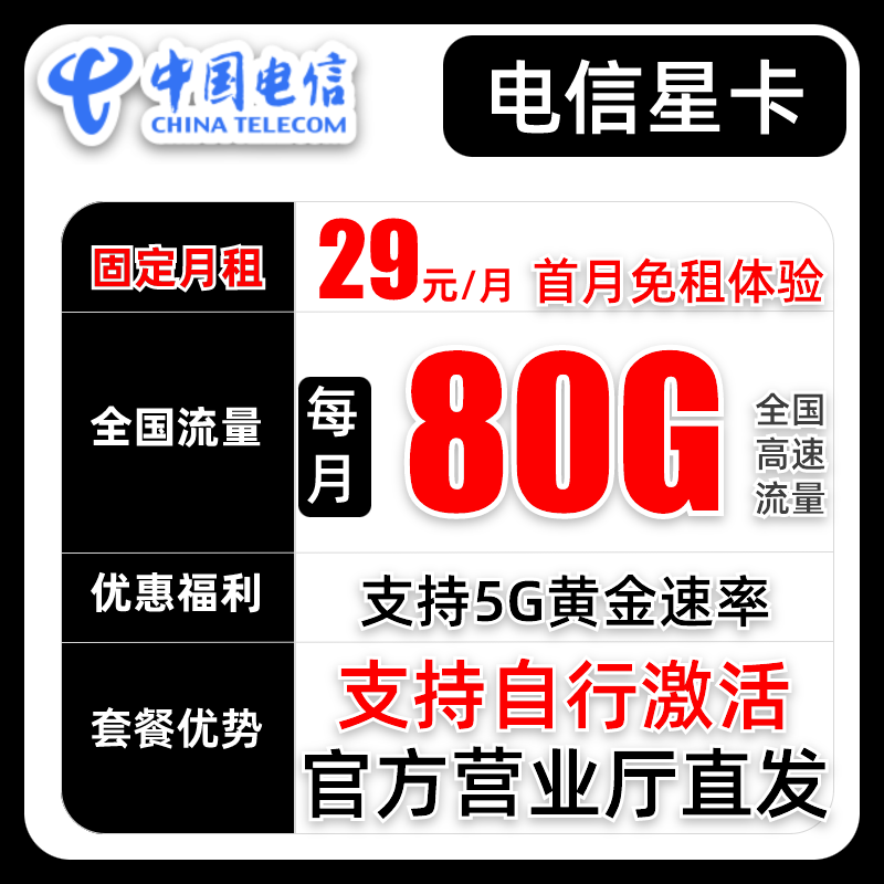 【发全国】青移动29元80G【激活后联系官方客服再+55的包】