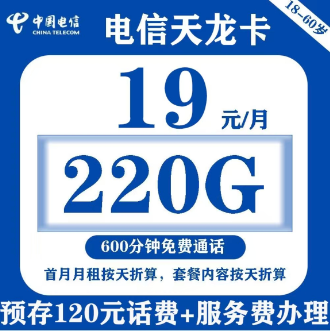 【发全国】电信19元220G+600分钟,到期可续(预存120元+68车费)